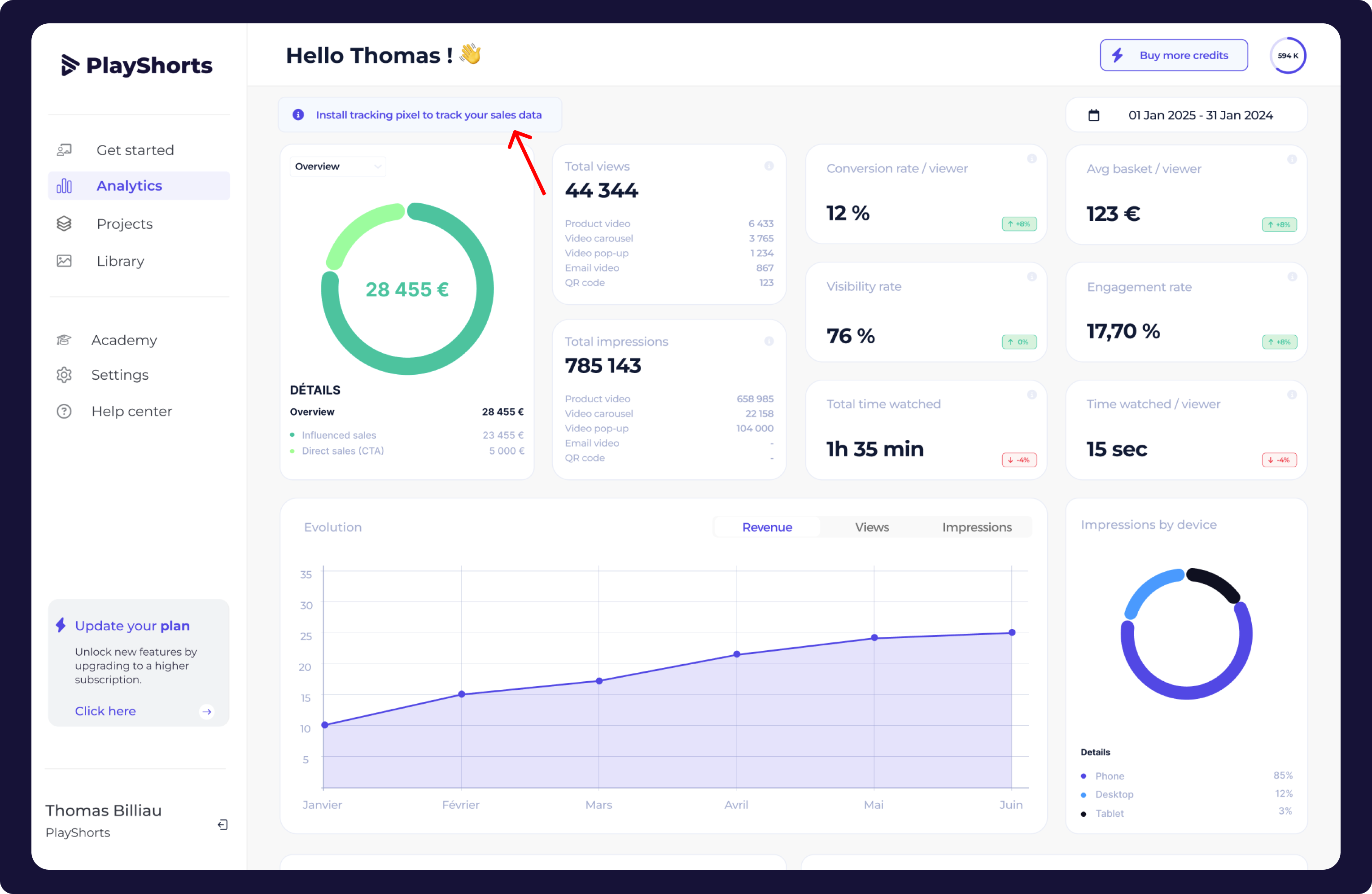 To track engagement and conversion performance of your video content, you need to install a tracking pixel on your store.