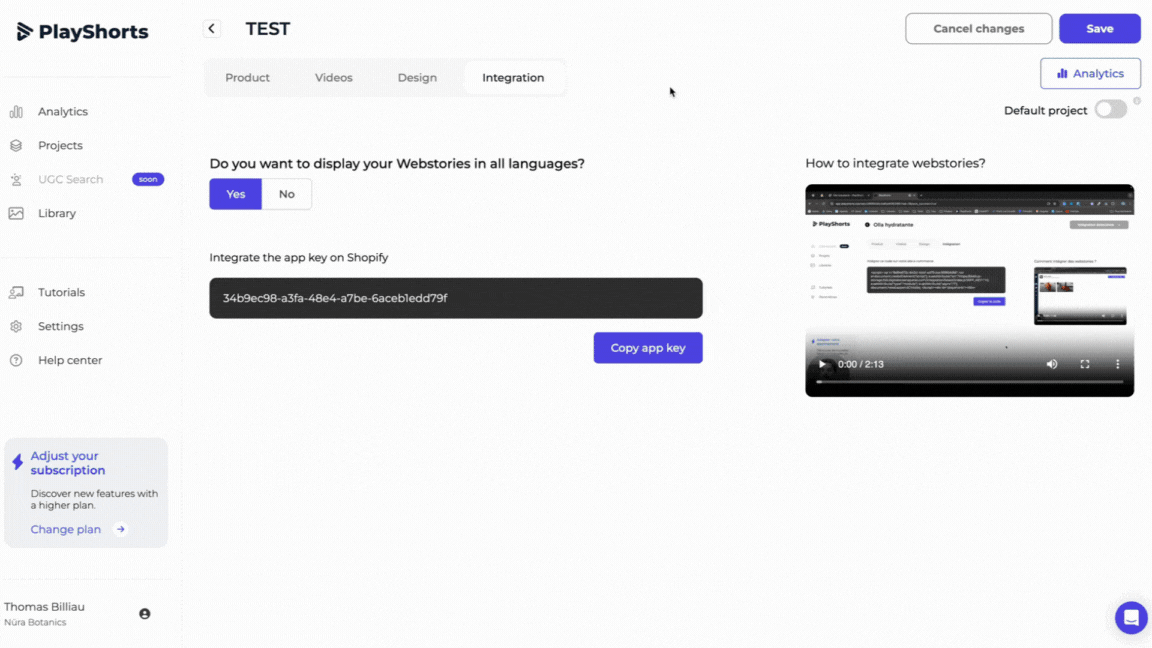 Note : this App Key is the same for all Product Page Project and it must appear on all product pages where you wish to integrate videos.