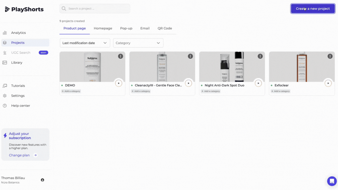 Note : You can create multiple stories for a single project, and add a maximum of 10 videos to each story.