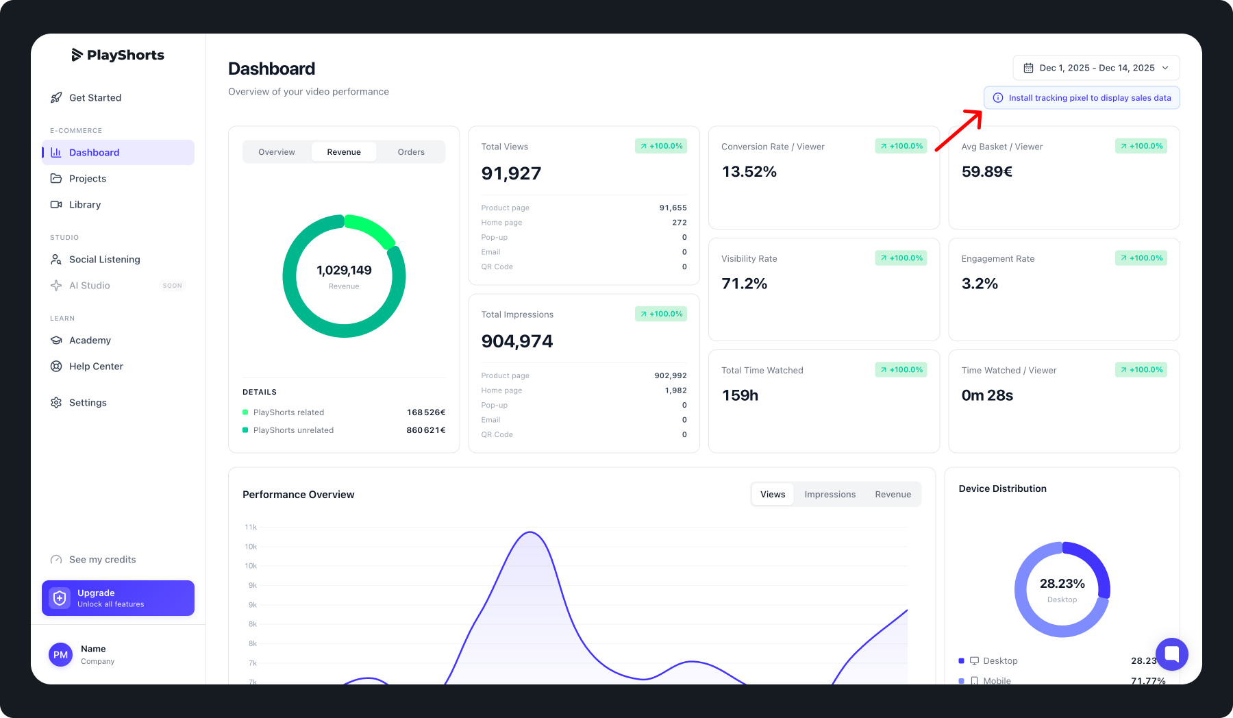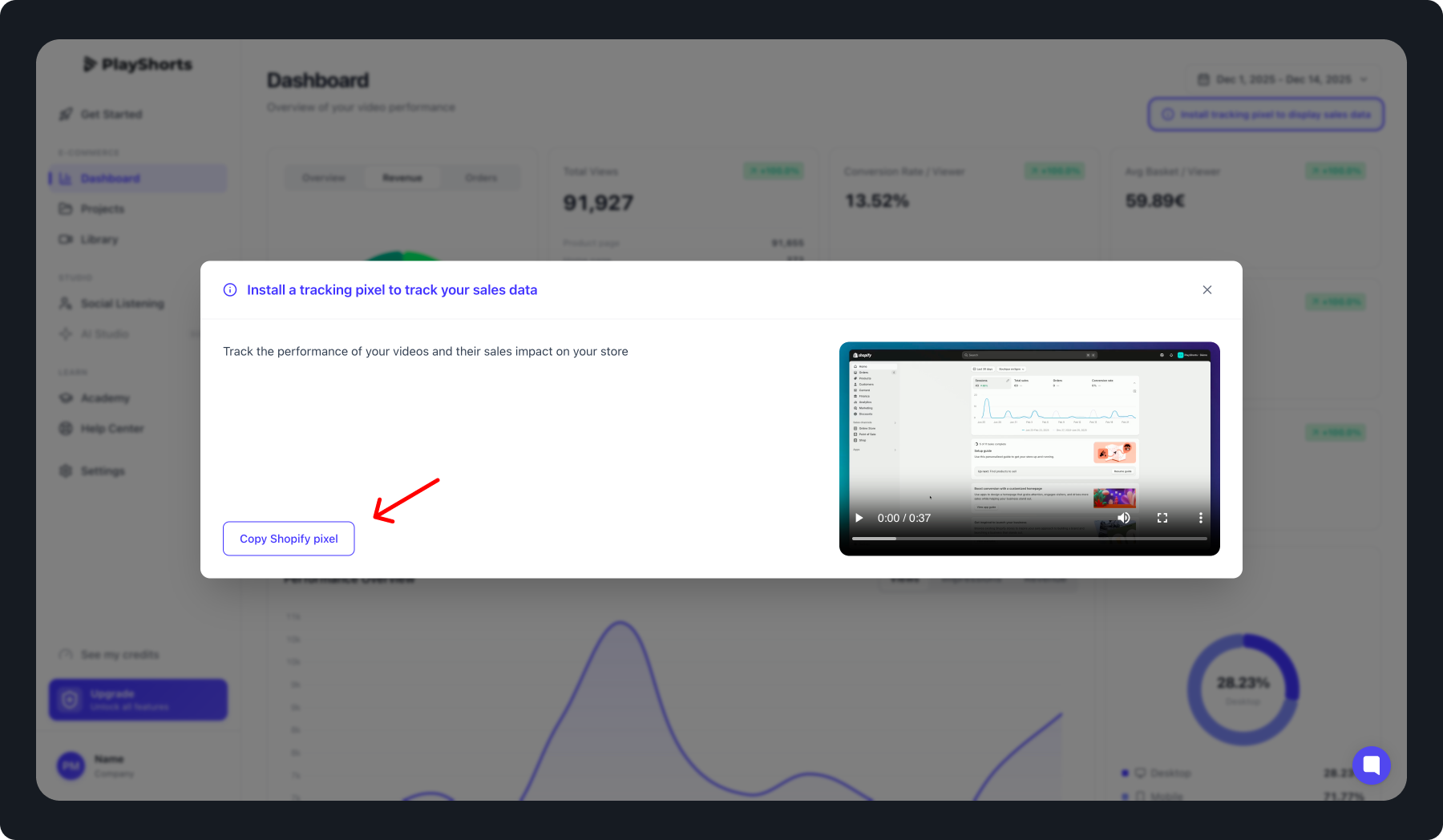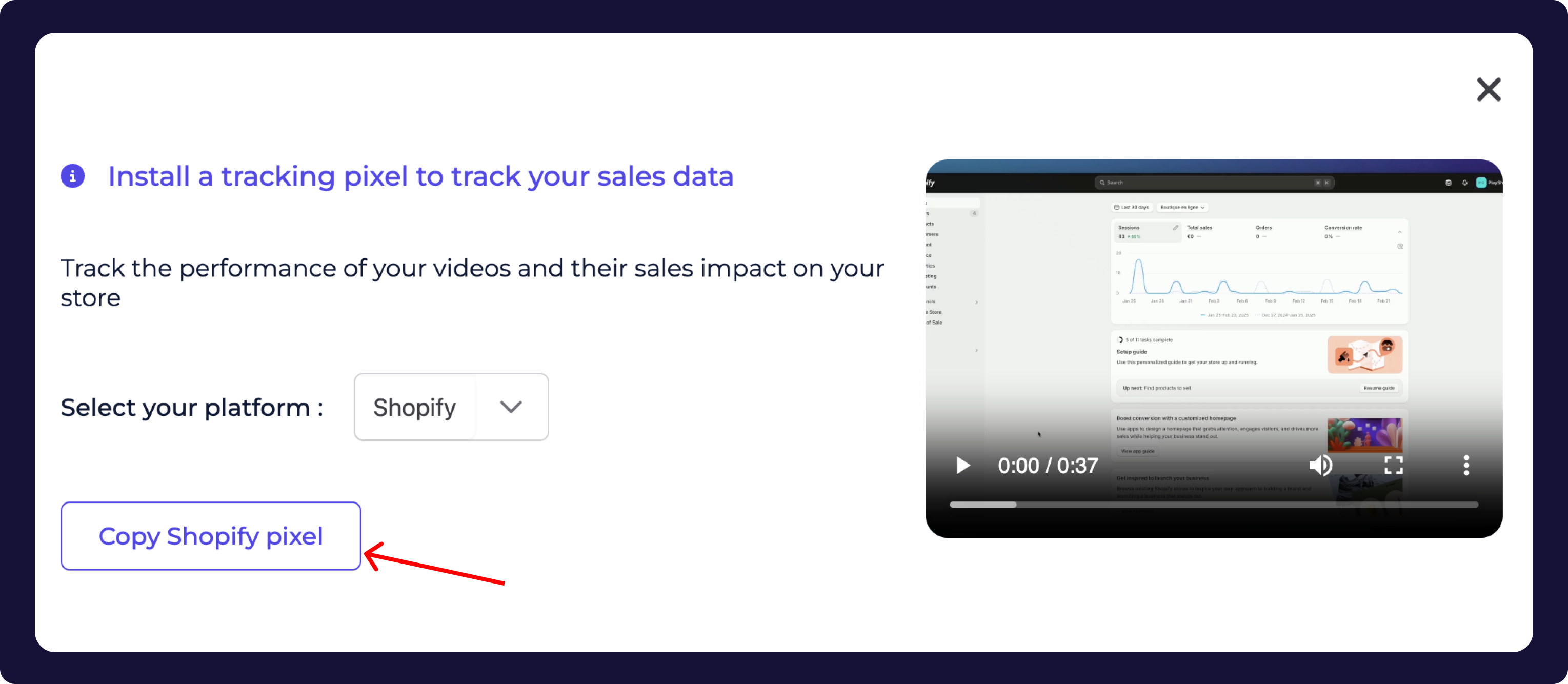 To track engagement and conversion performance of your video content, you need to install a tracking pixel on your store.