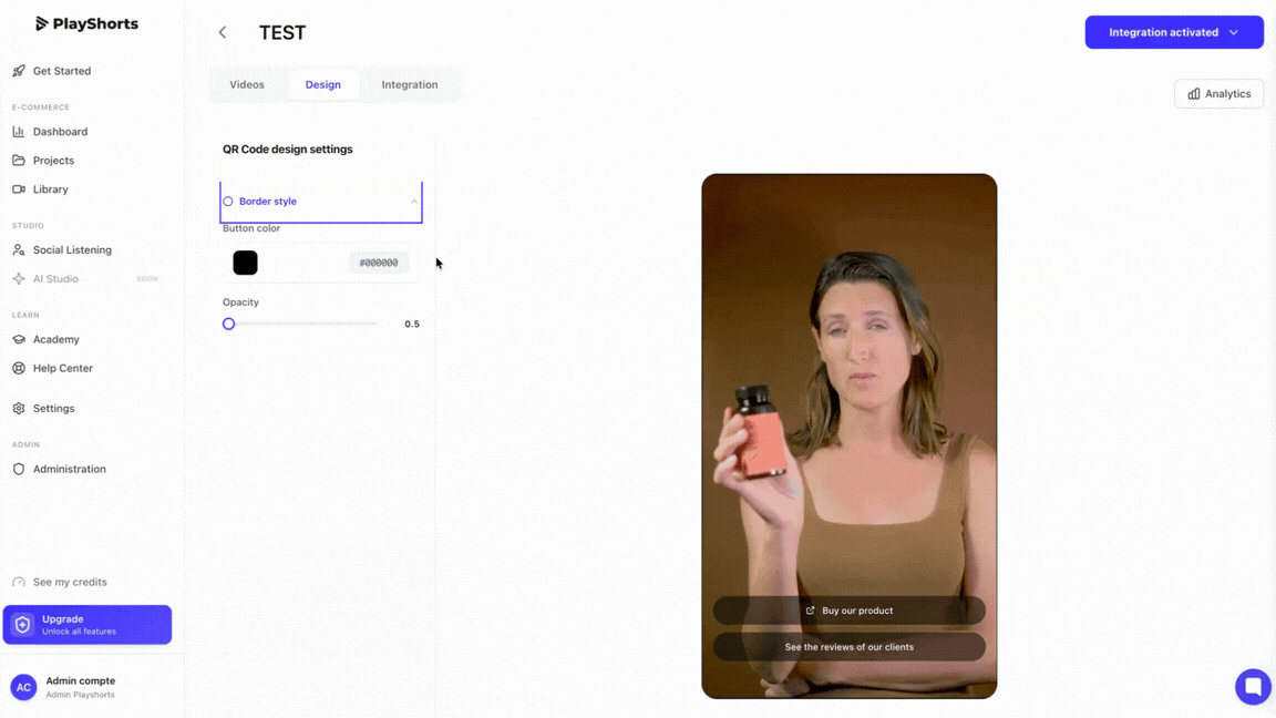 In the “Integration” section, find your QR Code.