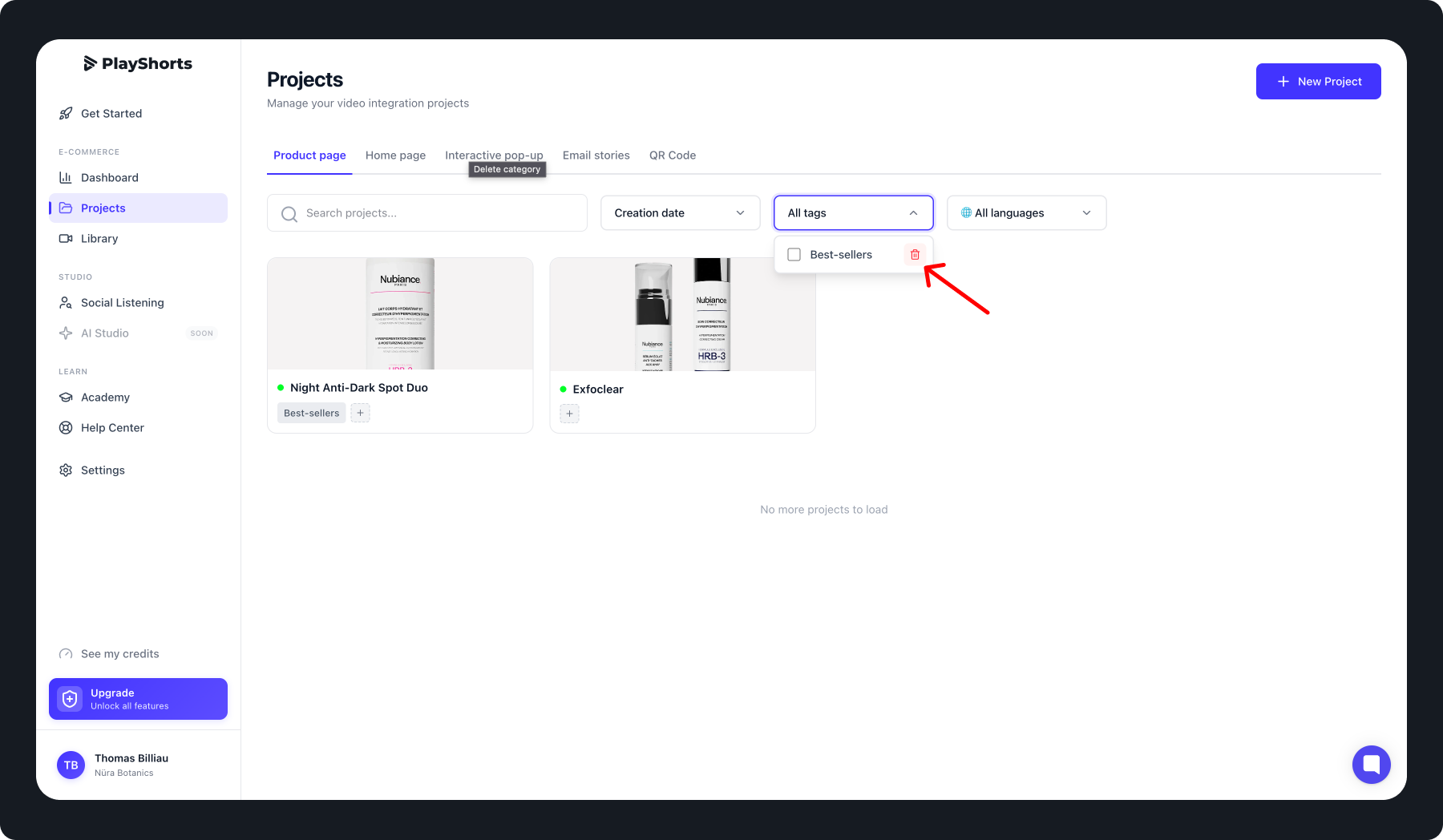 You can remove a filter from a project by dragging your mouse over the filter and selecting the "x".