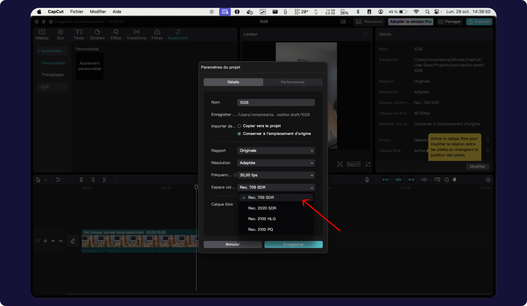 To improve the colorimetry of your video, you can, if you wish, convert your videos from HDR to SDR.