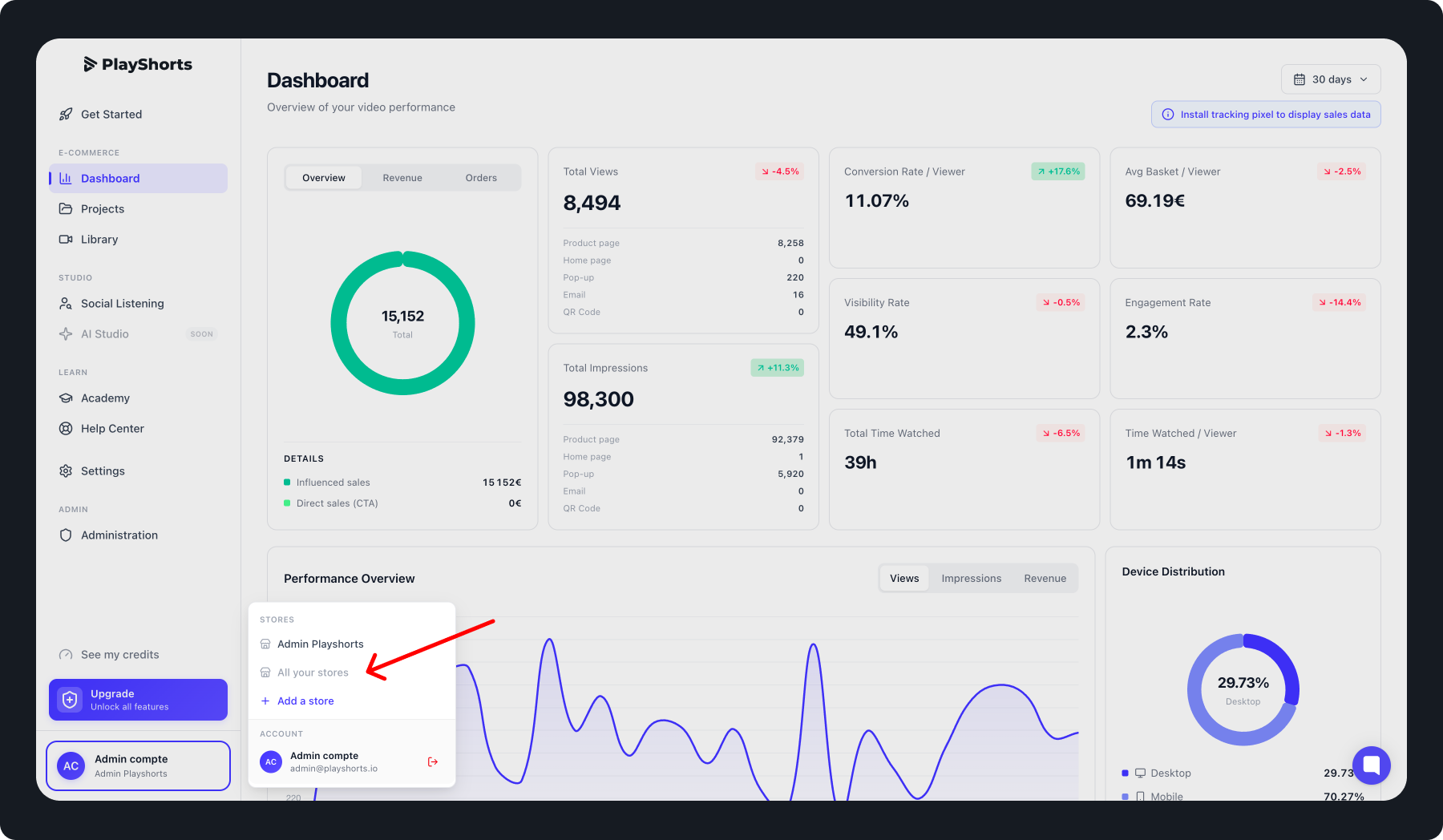 With PlayShorts, you can easily add and manage multiple stores from a single account.