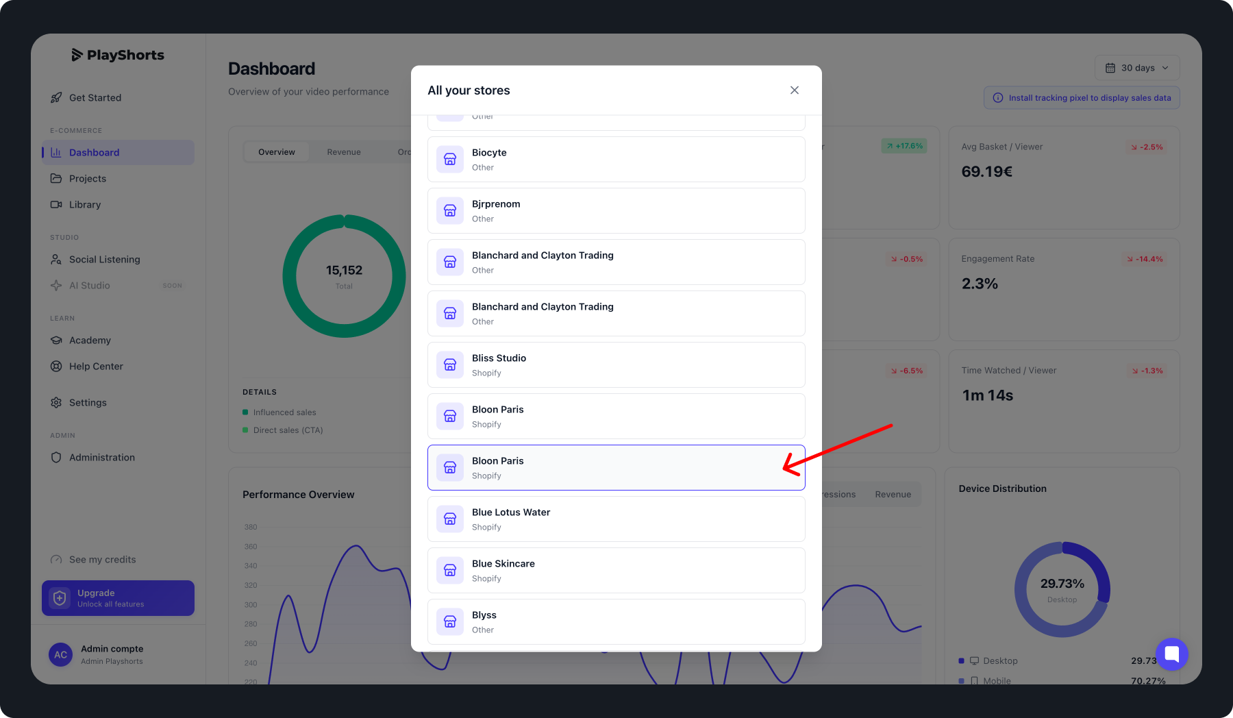 Once completed, your new store will appear in your PlayShorts account.