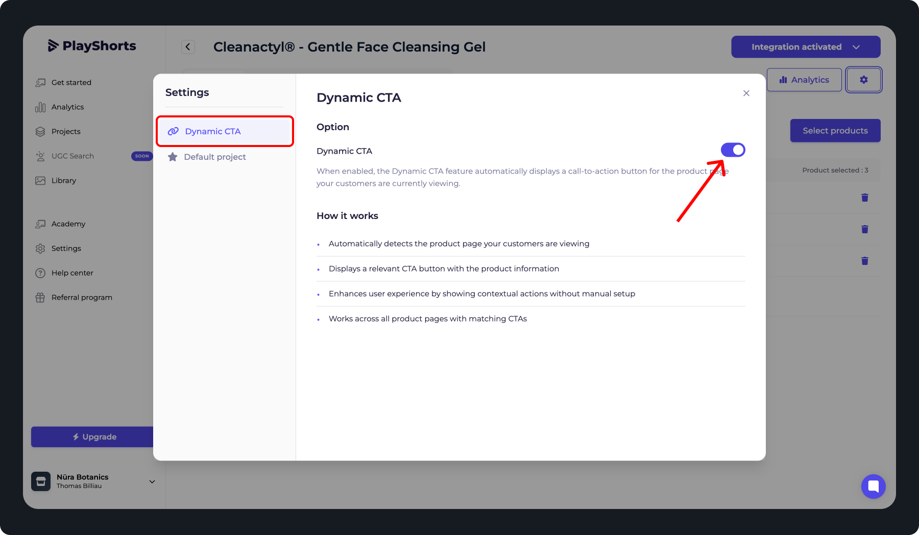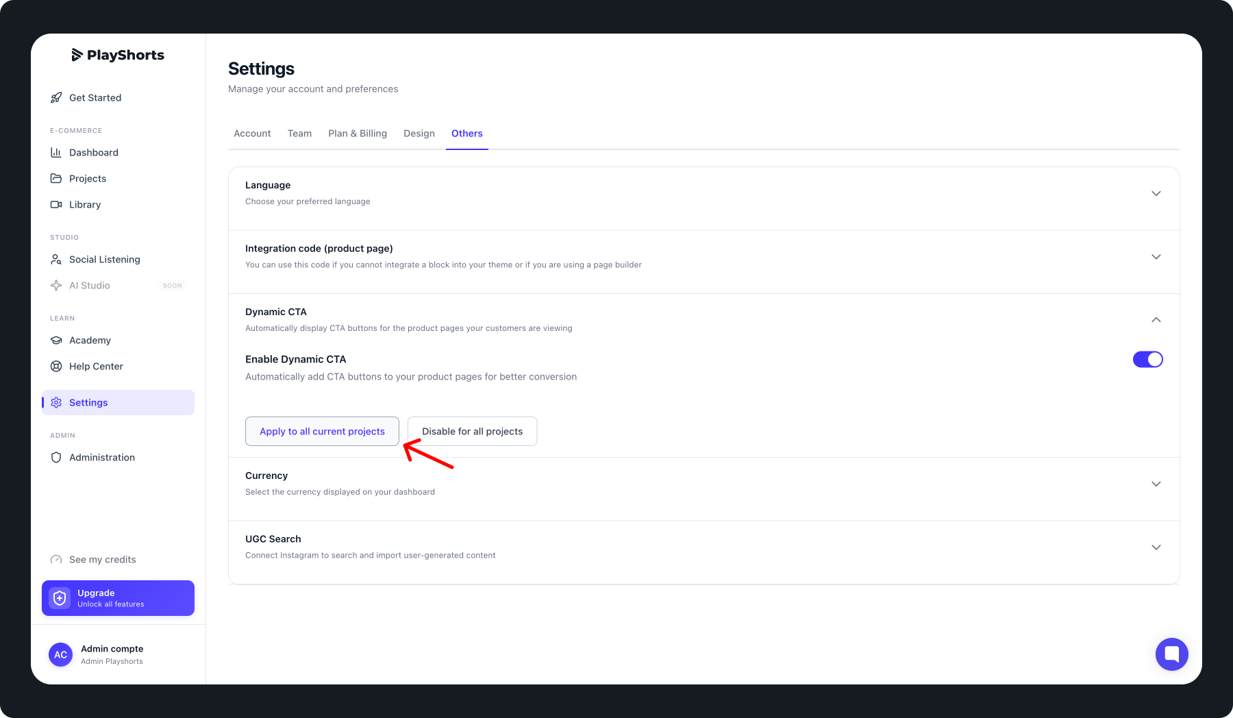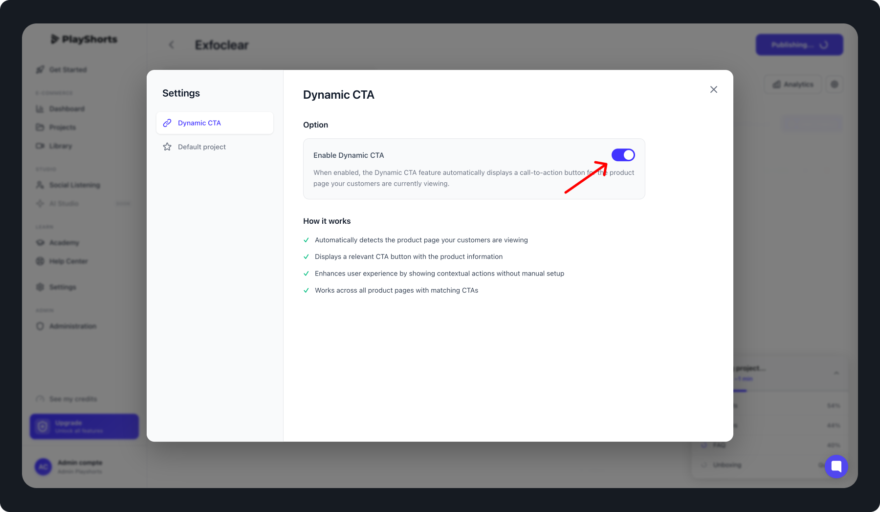 You can also enable the Dynamic CTA across all your existing projects in one click: