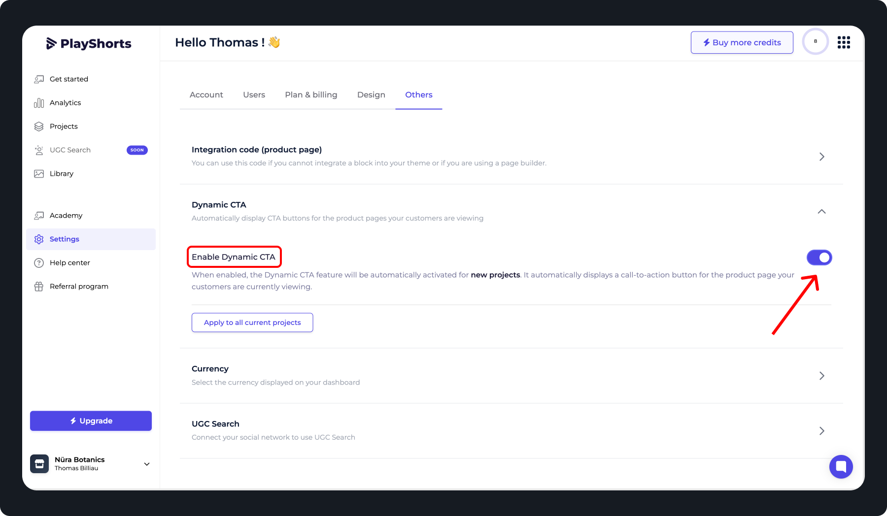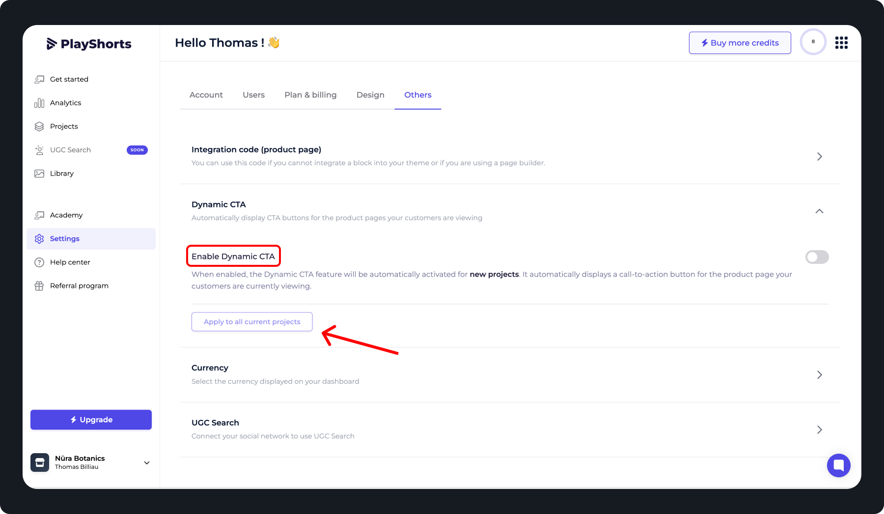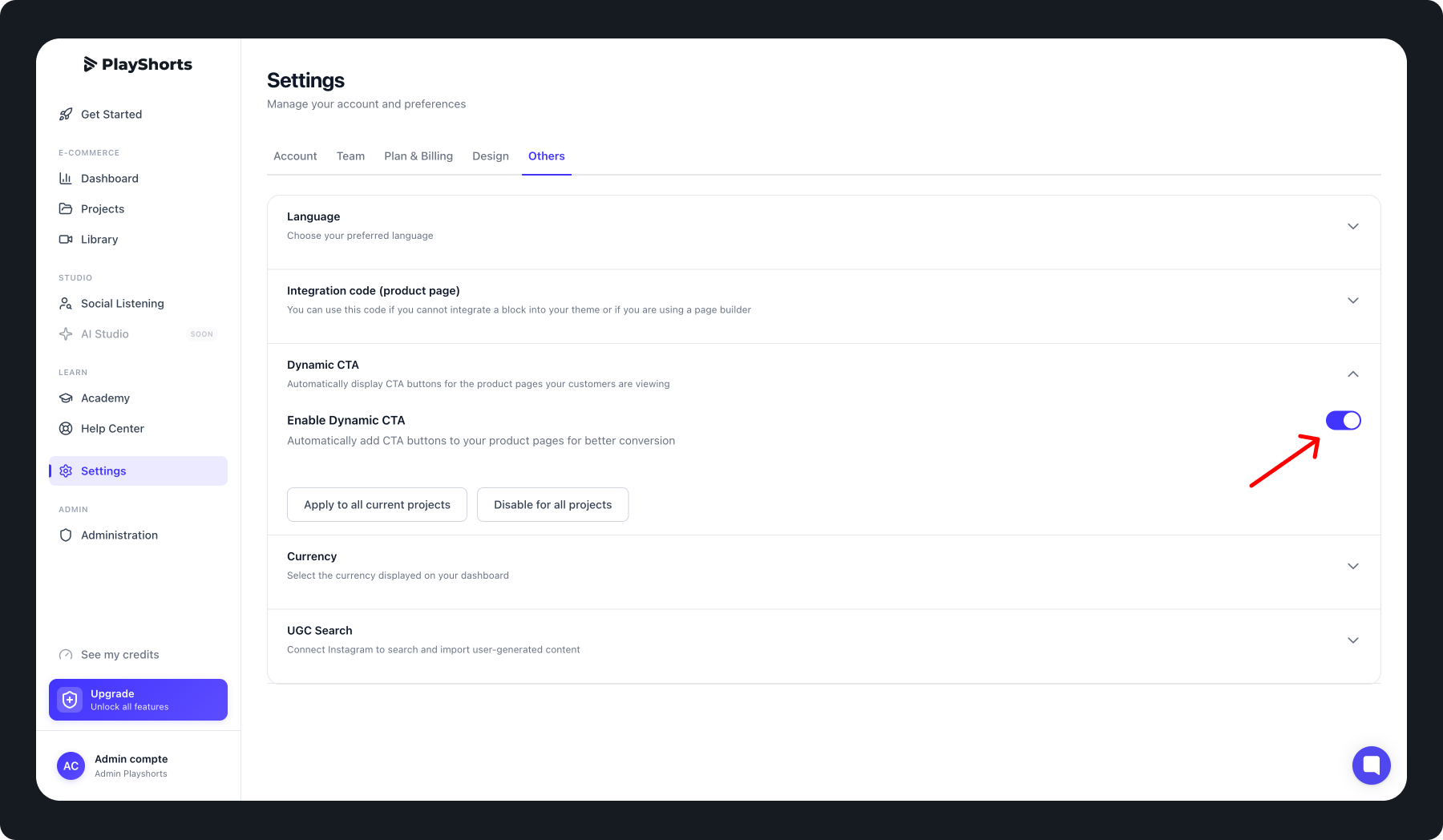 You can also enable the Dynamic CTA across all your existing projects in one click: