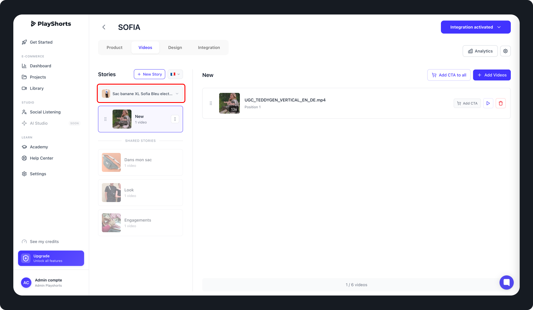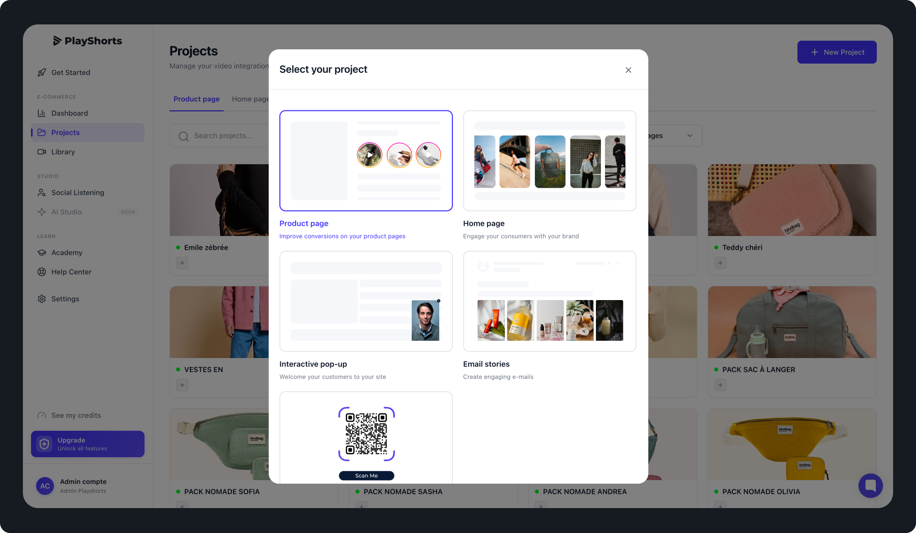 On PlayShort, a video project corresponds to a set of videos that are displayed on one or multiple product pages.