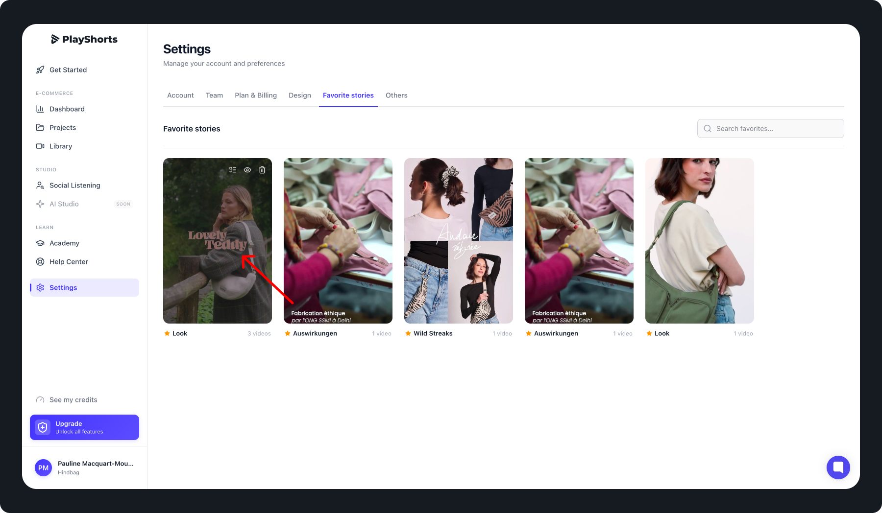 Once the story is created, click the menu on the right of the story title and select “Add to Favorites”.